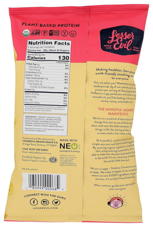 Lesser Evil Organic Himalayan Pink Salt Vegan Sun Poppers 113gm