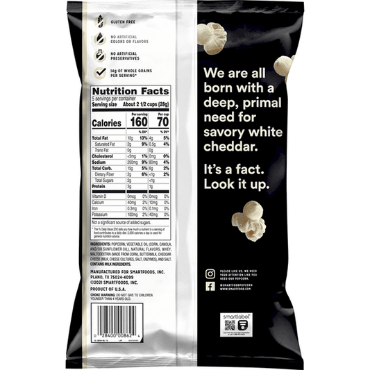 Smartfood White Cheddar Flavored Gluten Free Popcorn 156g